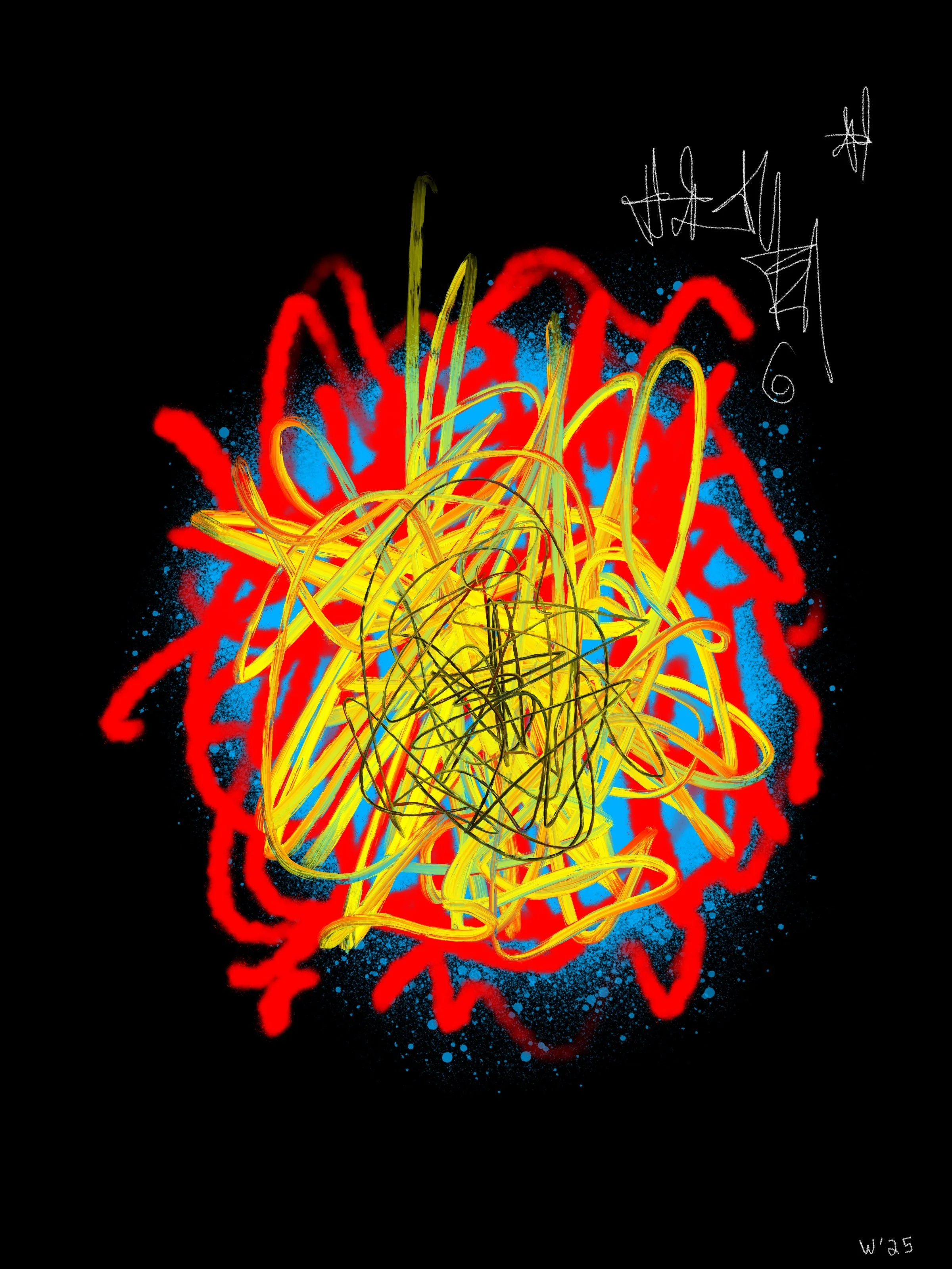 The results of a daily project spanning 100 days. Scraping the top layer of my subconscious to document visually in my evolving abstract style how I feel. Experimenting with various brushes, colors, and combinations in order to fully realize and communicate my emotions. Started Aug 25, 2025.